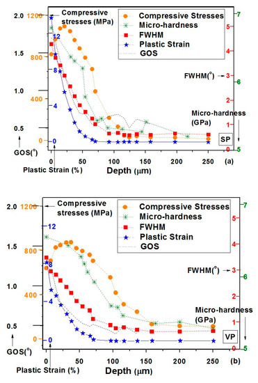 - Lee, H.; Mall, S. Stress relaxation behavior of shot-peened Ti-6Al-4V under fretting fatigue at elevated temperature. Mater. Sci. Eng. A 2004, 366, 412–420. [Google Scholar] [CrossRef]