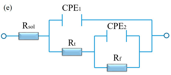 | Specimen | Rsol (Ω·cm2) | CPE1 (F/cm2) | n1 | Rt (Ω·cm2) | CPE2 (F/cm2) | n2 | Rf (Ω·cm2) |
