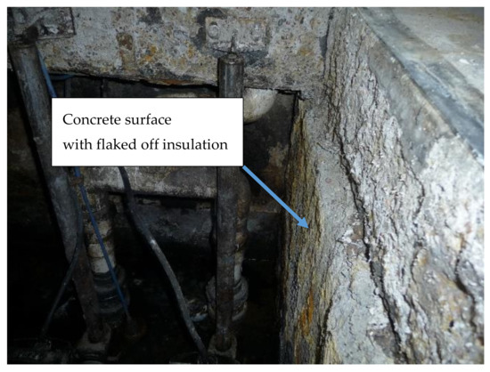 Walls below the ceiling slab were originally covered with insulation but in a considerable area of the walls this insulation had already flaked off.