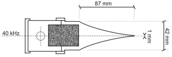Measurements were performed using ultrasonic point probes of frequency equal to 40 kHz the testing results of which were presented in the study [37]. The structure of the probes is shown in the Figure 4. They were equipped with exponential, half wave concentrators with a length of 87 mm and base width of 42 mm. The diameter of the contact point of the concentrators was 1 mm.