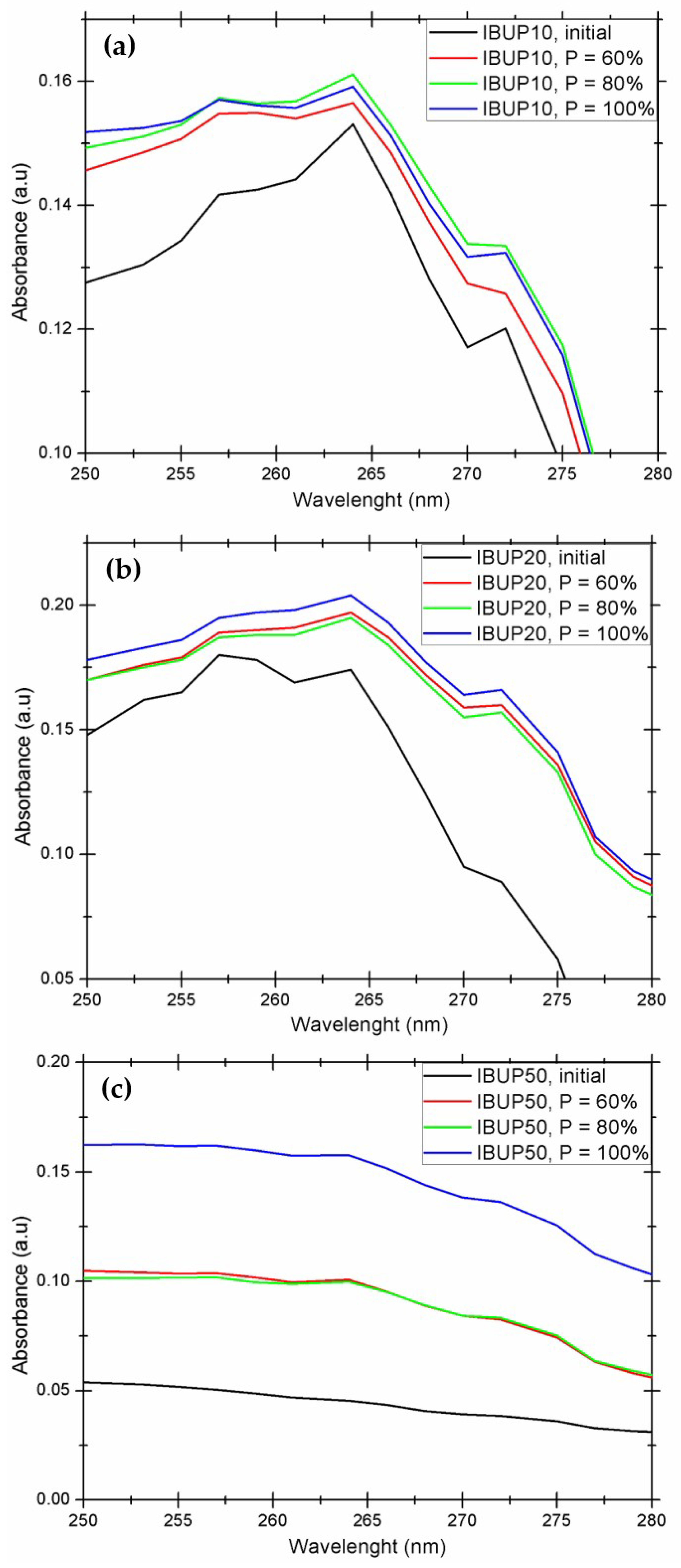 - Sunaric, S.; Petkovic, M.; Denic, M.; Mitic, S.; Pavlovic, A. Determination of ibuprofen in combined dosage forms and cream by direct uv spectrophotometry after solid-phase extraction. Acta Poloniae Pharm. Drug Res. 2013, 70, 403–411. [Google Scholar]