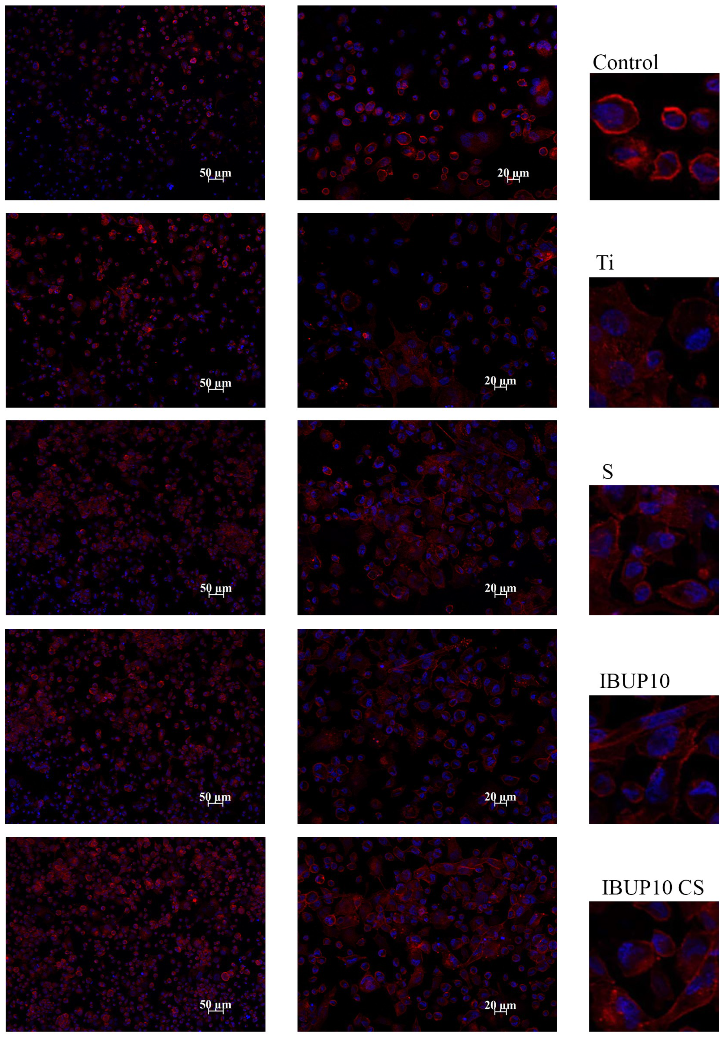 3.4.2. Cellular Adhesion and Morphology