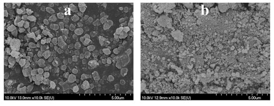 SEM micrographs of the H2_HS_1 sample before (a) and after (b) calcination.