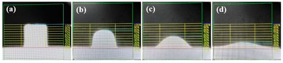 The height changes of slag melting process. (a) The original height; (b) The corresponding height of softening temperature; (c) The corresponding height of hemispheric temperature; (d) The corresponding height of flow temperature.