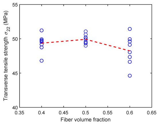 Effect of fiber volume fraction on the transverse tensile strength for six-fiber unit cells. (D’Mello and Waas [12]).