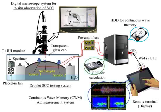 - Ito, K.; Yamawaki, H.; Masuda, H.; Shiwa, M.; Enoki, M. SCC monitoring of chloride droplets on thin SUS304 plate specimens by analysis of continuous recorded AE waveform. Mater. Trans. 2010, 51, 1409–1413. [Google Scholar] [CrossRef]