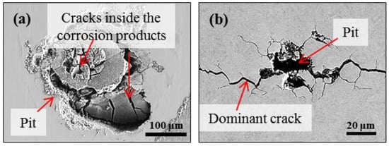- Horner, D.A.; Connolly, B.J.; Zhou, S.; Crocker, L.; Turnbull, A. Novel images of the evolution of stress corrosion cracks from corrosion pits. Corros. Sci. 2011, 53, 3466–3485. [Google Scholar] [CrossRef]