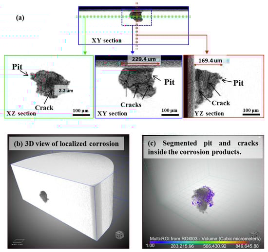 - Connolly, B.J.; Horner, D.A.; Fox, S.J.; Davenport, A.J.; Padovani, C.; Zhou, S.; Turnbull, A.; Preuss, M.; Stevens, N.P.; Marrow, T.J.; et al. X-ray microtomography studies of localised corrosion and transitions to stress corrosion cracking. Mater. Sci. Technol. 2006, 22, 1076–1085. [Google Scholar] [CrossRef]