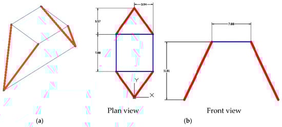 Although it is predictable that a suitable geometry of the connecting rod–crosspiece system would be beneficial, the overall rigidity of the building’s structure should always be taken into account. Therefore, different geometrical configurations must be studied, for which the only parameter is the height (the remainder are dimensions derived from other building factors) and the relative rigidity, for which the only parameters are the sections of the elements.