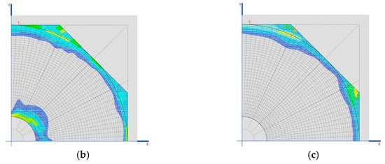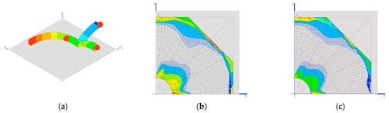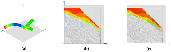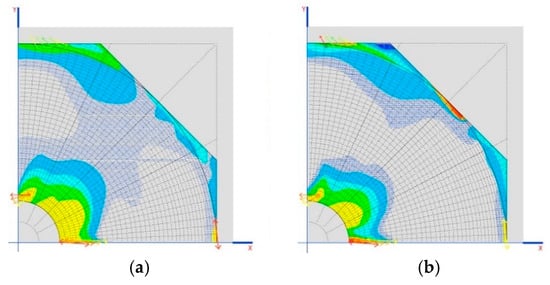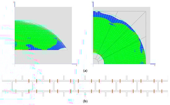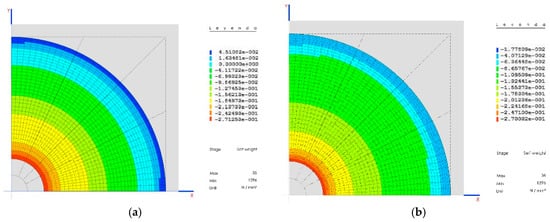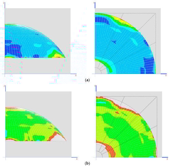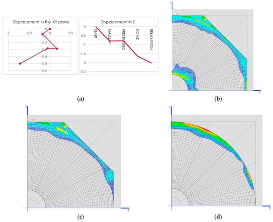 Traction on the dome (MPa) in the two final phases is shown in Figure 13b,c.
