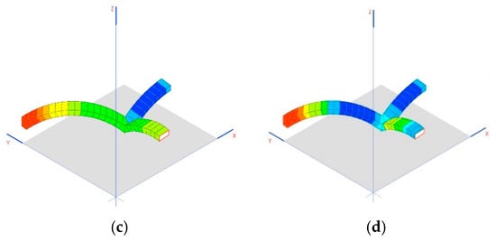 Upon completion, the arches work under compression, within a range of 45 kN to 624 kN, which guarantees stability in the structure (Figure 19a).