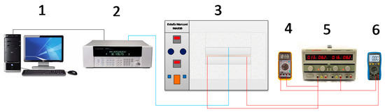 The experimental apparatus sketch used is shown in Figure 2. As can be seen, all the components are numbered following this configuration: 1: Micro-computer; 2: Data acquisition; 3: Oven; 4: Multimeter; 5: Power supply; and 6: Multimeter.