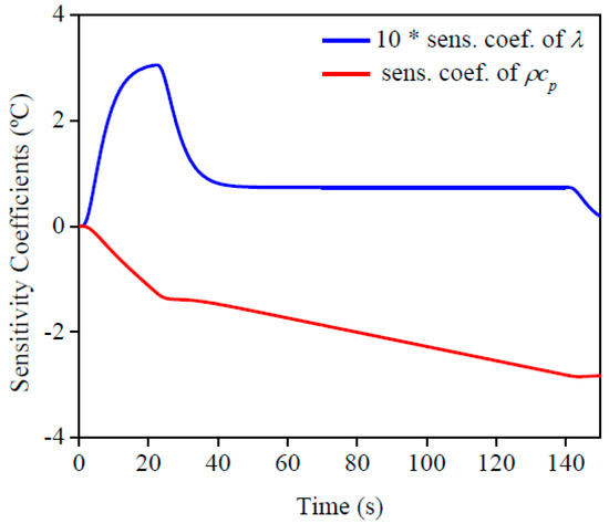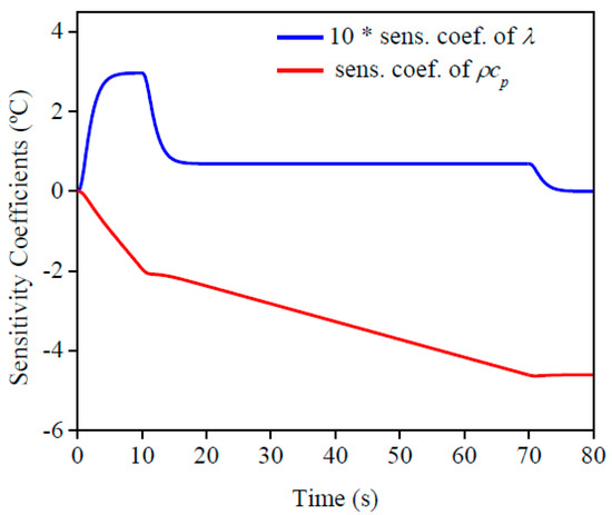 From these results, Equations (9) and (10) can be written as follows for ρcp and λ respectively: