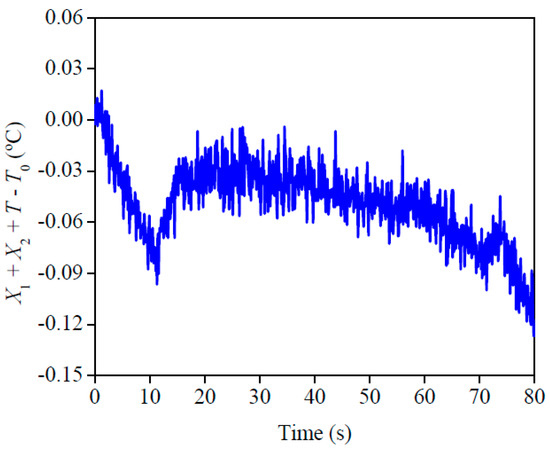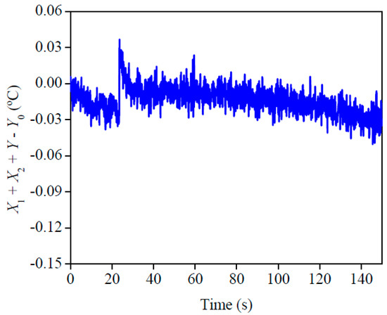 The best condition and design for the experiment is presented in Figure 5. This analysis indicates that the best quality for the experiment was when the sensitivity coefficient of ρcp and λ plus the temperature difference was close to 0 (X1 + X2 + Y − Y0 ≅ 0). This analysis is relevant because it is a complement to the sensitivity analysis, in other words, it is a confirmation that all the established conditions allow a precise property estimation. A good condition of the experiment may be seen here, since the highest difference was around 0.12 °C. This affirmation can be checked when the obtained difference is compared with the difference between the final and initial temperature of each experiment, which is around 4 °C.