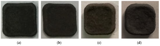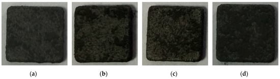 Images of steel substrates milled with NiAl and CrB2 powders for: (a) 4, (b) 8, (c) 16, and (d) 32 h.