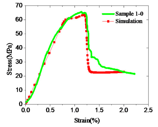 Simulation result and uniaxial test data of Sample 1-0.