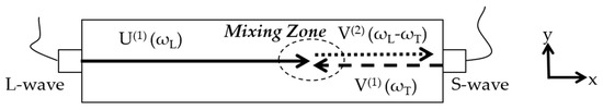 And, the primary excited longitudinal and shear waves are defined by Equations (9) and (10):