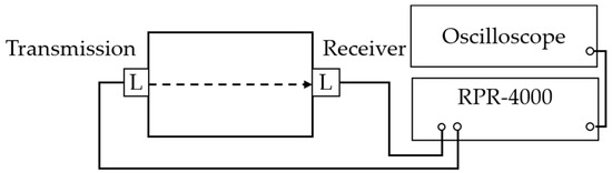 The experimental setup for measuring higher order harmonic nonlinearities is shown in Figure 6. Two longitudinal wave transducers are located in a face to face each other throughout the specimen. One transducer works as transmission and the other is working as a receiver. The letter L denote longitudinal wave transducer in the Figure 6. High-voltage tone burst system calls such as the RPR-4000 (Ritec Inc., Warwick, RI, USA) have been working to generate 20 cycles with the PZT sensor (Olympus NDT NE Inc., Quebec City, QC, Canada) signal at 5 MHz. The frequency bandwidth can be easily limited by the window tone burst signal generated by the measurement system.