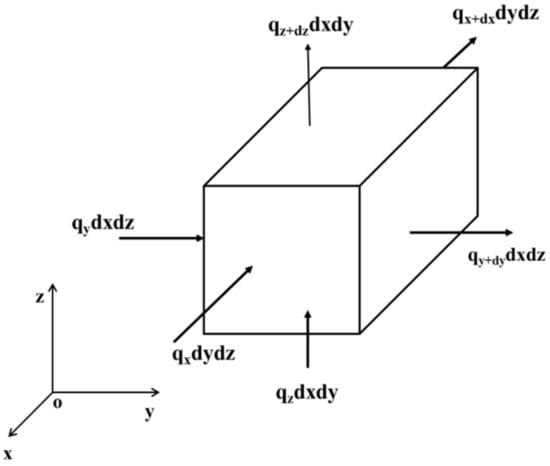Similarly, the heat entering the system in x and z directions per unit time can be written as follows:
