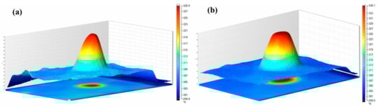The sample of φ10 × 2 mm2 was heated at 343.15 K using a DB-2A plate heater (Ningbo Hi-Tech Zone, Ningbo, China) and analyzed using Fluke Ti100 infrared thermography (Everett, MA, USA). Figure 8 shows that the temperature distribution of the sample reached 328.95 K and 336.15 K when heated for 21 s and 105 s, respectively.