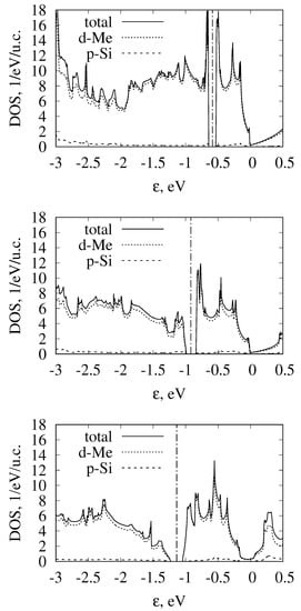 - Imai, Y.; Mukaida, M.; Kobayashi, K.; Tsunoda, T. Calculation of the density of states of transition metal monosilicides by a first-principle pseudopotential method using plane-wave basis. Intermetallics 2001, 9, 261–268. [Google Scholar] [CrossRef]