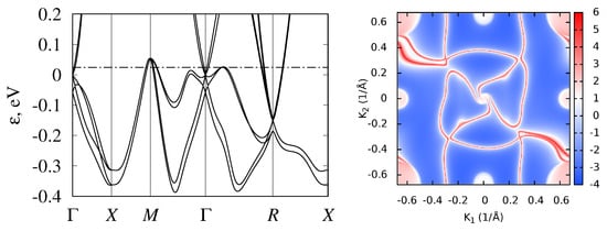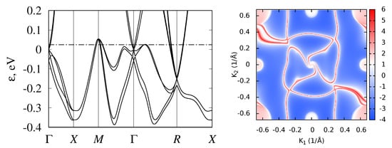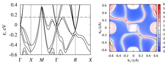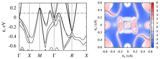 - Mostofi, A.A.; Yates, J.R.; Pizzi, G.; Lee, Y.S.; Souza, I.; Vanderbilt, D.; Marzari, N. An updated version of wannier90: A tool for obtaining maximally-localised Wannier functions. Comput. Phys. Commun. 2014, 185, 2309–2310. [Google Scholar] [CrossRef]