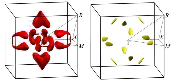 - Huang, S.M.; Xu, S.Y.; Belopolski, I.; Lee, C.C.; Chang, G.; Chang, T.R.; Wang, B.; Alidoust, N.; Bian, G.; Neupane, M.; et al. New type of Weyl semimetal with quadratic double Weyl fermions. Proc. Natl. Acad. Sci. USA 2016, 113, 1180–1185. [Google Scholar] [CrossRef]
