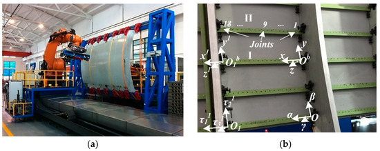 Experiment platform of aircraft fuselage panel assembly. (a) Aircraft assembly platform; (b) substructure of fuselage panel.