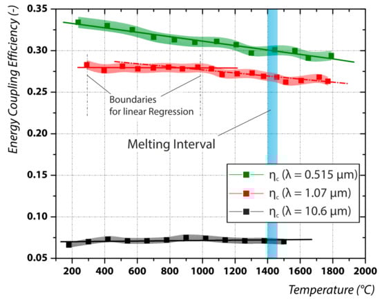 - The energy coupling efficiency for CO2 laser irradiation (λ = 10.6 µm) is completely independent of the temperature for the evaluated temperature range.