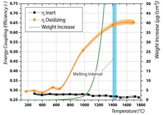 - The process-induced oxidation leads to a dramatic increase of the energy coupling efficiency above 650 °C and stays at this high level also in the liquid phase.