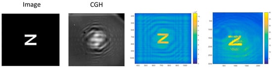 Figure 18 shows the calculated and the actual grayscale CGH of the letter Z, along with the theoretical and experimental reconstructed image.
