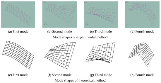 Figure 19 shows the first four natural modes of the composite laminate obtained by the experimental method and theoretical method.