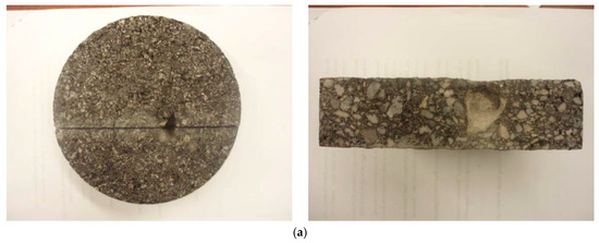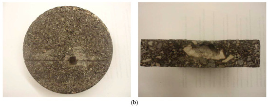 As aforementioned, a couple of cores were taken from pavement areas without clay balls to verify if there was any clay ball not exposed to the pavement surface. In the laboratory, each six-inch core was sliced into several pieces. Figure 7a,b shows an example of sliced core from top and side, respectively. As seen in Figure 7b, the samples are very clean and no clay ball was found. Additionally, there was no aggregate size larger than 1 inch in diameter, the critical size of clay ball for the popout. All the rest cores were sliced and no clay balls were observed as well, even for the cores taken from bad sections (with the large frequency of clay balls). This indicates that in the project evaluated all the clay balls were exposed to the pavement surface.