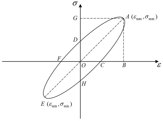 where εmax, σmax, εmin, and σmin are the dynamic strains and dynamic stresses at points A and E in Figure 6, respectively.