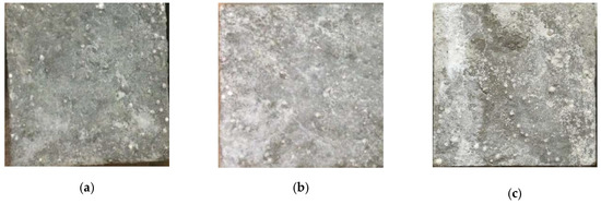 The surface of structural EPS concrete of group B after W-D cycles: (a) 90 cycles; (b) 120 cycles; (c) 150 cycles.