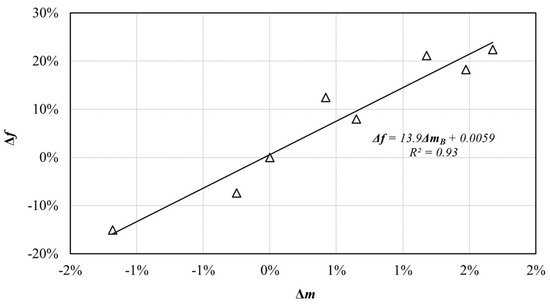 The relationship between Δf and ΔmB of structural EPS concrete.