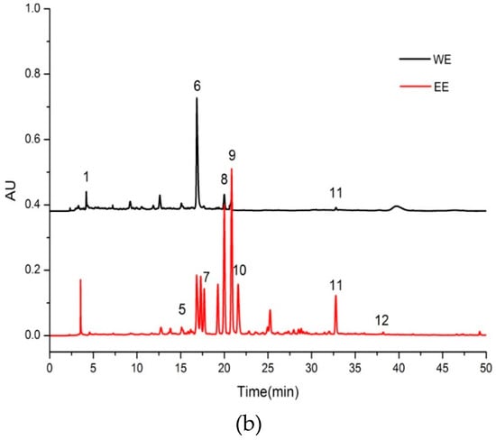 3.1. Composition Difference between Water Extract and Ethanolic Extract of Guava Leaf