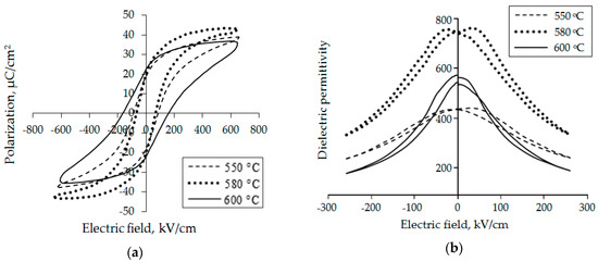 ε. Also, during longer heat treatment, the thickness of PbO interlayers increased; consequently, the number of pinning charges at the interfaces also went up, which led to the removal of an even larger volume of ferroelectrics from the polarization processes. The latter was confirmed by the growth of switching fields for films annealed at 600 °C (