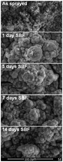 These coatings possess a Ra in the range of 0.4–12.1 μm. The great variability depends not only on the deposition method and on the roughness of the substrate, but on the dimension of the powders and on the synthesis technique as well. Rougher surfaces were obtained using plasma spraying, with Ra values above 5 μm. Ra below 5 μm has been found when other deposition methods have been applied (i.e., spray-coating and spin-coating).