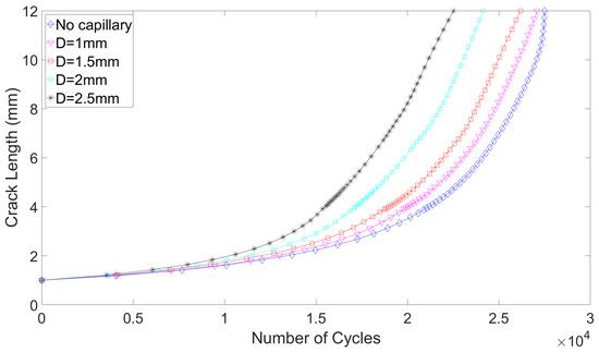 3.2. Influence of Capillary Diameter on Crack Growth Life