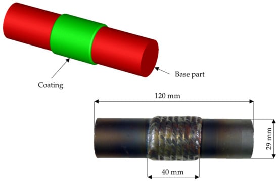 In this study, the coating thickness of laser cladded coaxially arranged hybrid parts after CWR is investigated. These investigations started by performing finite element (FE)-simulations followed by experimental trials. The geometry used for these investigations consisted of a cylindrical base part of C22.8 (1.0460) and a cladded coating of X45CrSi9-3 (1.4718) in the middle of the workpiece (Figure 2). The main input parameters of this study are the wedge angle , cross-section reduction , and forming velocity ν, while the main output parameter is the change of the coating thickness during the rolling process. This will be used to determine the deviations between the coating thicknesses predicted by FE-simulations and those achieved in experimental trials and therefore the prediction accuracy of the used model.