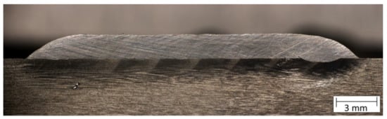 - Barroi, A.; Hermsdorf, J.; Kaierle, S.; Overmeyer, L. Influence of scan width and wire feed speed on seam geometry and the substrate surface in laser wire cladding. In Proceedings of the 35th International Congress on Applications of Lasers & Electro-Optics (ICALEO 2016), San Diego, CA, USA, 16–20 October 2016; Pflueger, S., Ed.; Laser Institute of America: Orlando, FL, USA, 2016. [Google Scholar]