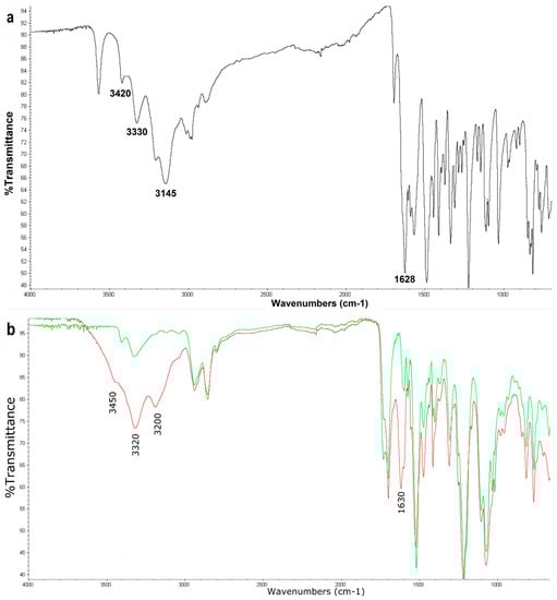 - Barrios, V.A.E.; Mendez, J.R.R.; Aguilar, N.V.P.; Espinosa, G.A.; Rodríguez, J.L.D. FTIR—An Essential Characterization Technique for Polymeric Materials. In Materials Science, Engineering and Technology; Theophanides, T., Ed.; IntechOpen: London, UK, 2012; Available online: https://www.intechopen.com/books/infrared-spectroscopy-materials-science-engineering-and-technology/ftir-an-essential-characterization-technique-for-polymeric-materials (accessed on 10 August 2019).