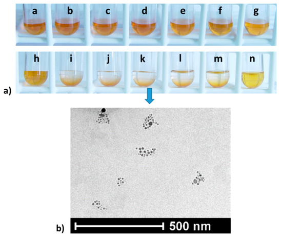 Spectral changes were accompanied by a change in the color of the solution. When the samples were centrifuged, sedimentation of the AgNPs in the samples, with the optimal concentration ranges, took place (Figure 10).