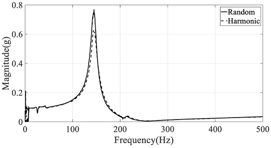 Although the testing environments for obtaining the frequency response function were identical, two methods were used to apply the load with the exciter. A single input frequency was increased when applying the vibration in the harmonic method, while all frequencies were applied simultaneously in random excitation. Table 1 and Table 2 list the excitation profiles used in the test. Since the frequency response function is only valid under the time-invariant linear system, the nonlinear properties of the CFRP specimens were eliminated from the averaged spectral data of more than 100 frequency response data in the same vibration test mode.