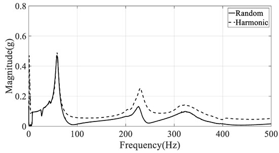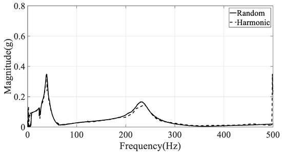 The damped natural frequency and damping coefficient were calculated from the summation of frequency response functions in Figure 4, Figure 5 and Figure 6, respectively; the calculation results are summarized in Table 3. Here, the error between two spectral loading cases is defined as below, and denotes the modal parameter at K excitation mode (R: random, H: harmonic).