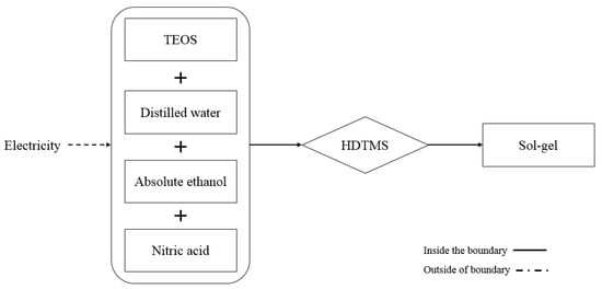 The following steps of the sol-gel coating production at lab-scale were considered during the analysis (Figure 2):