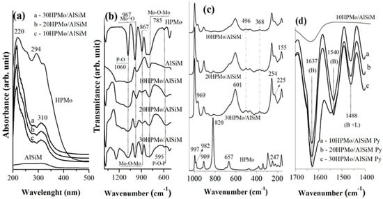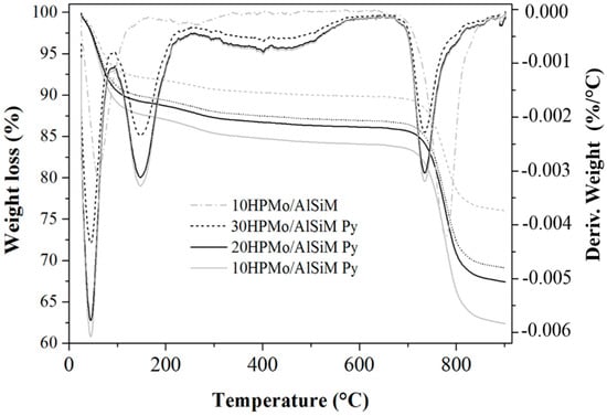 −1. The samples obtained were designated as xHPMo/AlSiM, where x refers to the percentage of HPMo supported in the AlSiM, which varied in 10%, 20% and 30% by mass, according to