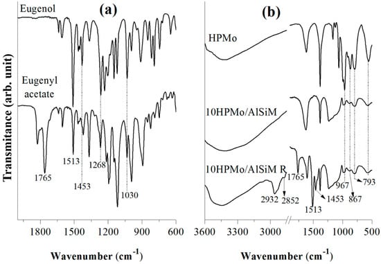 12-molybdophosphoric acid (H3PMo12O40.H2O, HPMo, Mo = 63.08%, VETEC, Darmstadt, Germany), sulfuric acid (H2SO4, 98%, ISOFAR, Duque de Caxias, Rio de Janeiro, Brazil) and hydrochloric acid (HCl, 37%, Fmaia, Belo Horizonte, MG, Brazil), cetyltrimethylammonium bromide (C16H33(CH3), CTABr, Vetec, Rio de Janeiro, Brazil), ethanol (EtOH, 98%, Nuclear, São Paulo, SP–Brazil) and sodium hydroxide (NaOH, VETEC, Rio de Janeiro, Brazil), eugenol (EugOH, 99% Sigma Aldrich, Darmstadt, Germany) and acetic anhydride (AA, Nuclear, São Paulo, SP–Brazil). All chemical reagents and solvents were analytical grade and used without further purification. The flint kaolin was kindly provided by the UFPA Institute of Geology from the Capim River Region (Pará Brazil).