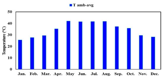 As the ambient temperature in Al-Ain, UAE increases in the summer season, the energy demand for cooling purposes of residential buildings reaches its maximum during the hot months. The average ambient temperature during the hot months reaches up to 43 °C, while the solar radiation during the same months reaches 650 kW/m2 as a total daily.